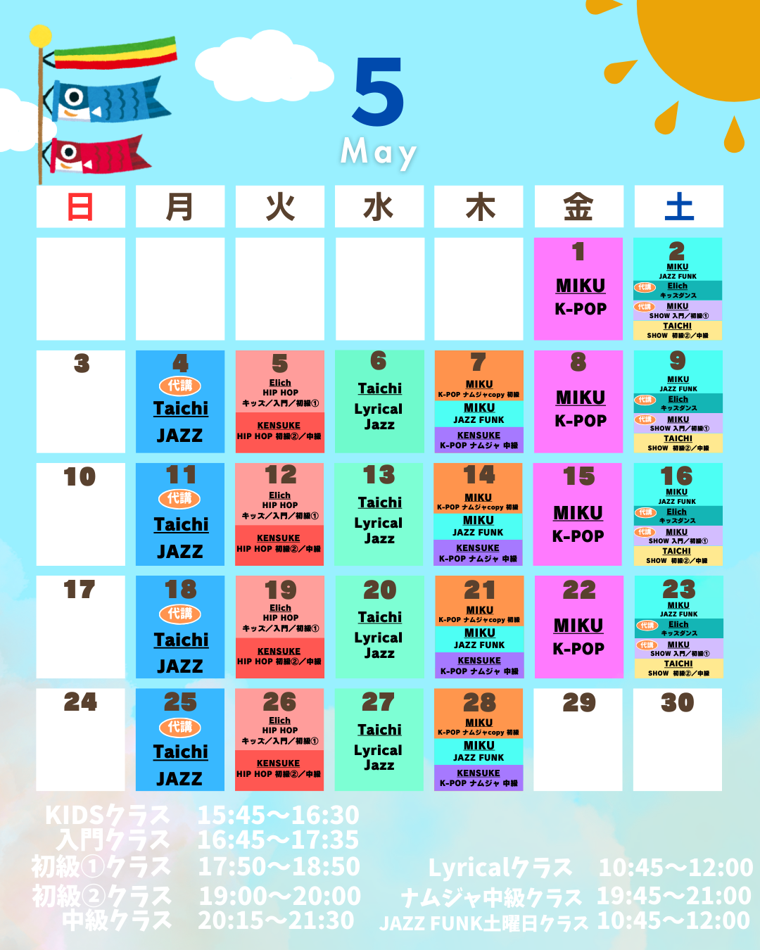 ⭐️【月曜日】JAZZクラス 『代講』RYO先生→taichi先生