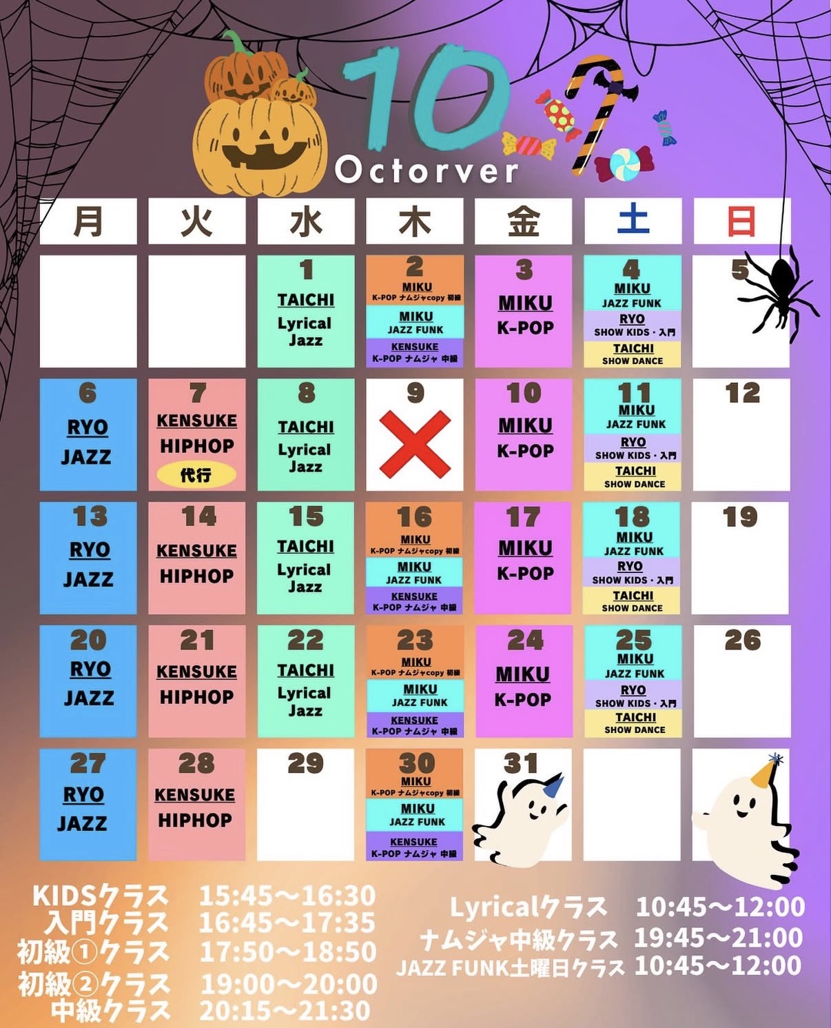 令和7年度10月のレッスンスケジュールご確認ください🎃👻